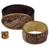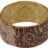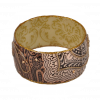 The marsh sands design of this cold enamel bangle is great for adding a touch of the Sahara without flaunting animal print. Great for work or play this bangle is created from a collage of materials including silk paper and tiny golden beads. It is then edged with gold glitter and cold enamelled.