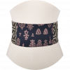 This stunning Japanese style obi sash belt is a unique handmade original. It’s handsome and one of a kind navy script design is created from the use of fabrics collected and salvaged from far and wide including vintage kimono pieces, linens, laces, embroideries and contemporary fabrics. This is a piece of art designed to be worn.