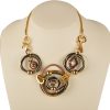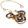 This wonderfully innovative piece offers the owner a choice of wearing it as a bracelet or a necklace. Featuring an original design of woven leather, mixed metals and Swarovski beads and crystals, a detachable gold plated snake chain allows you to easily switch this piece from a bracelet to a necklace in seconds.